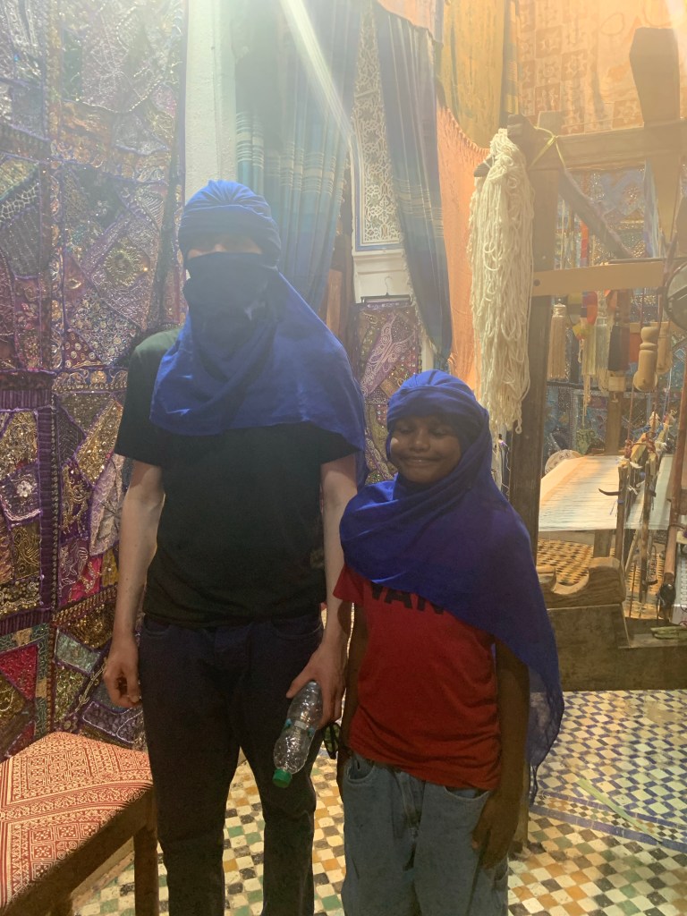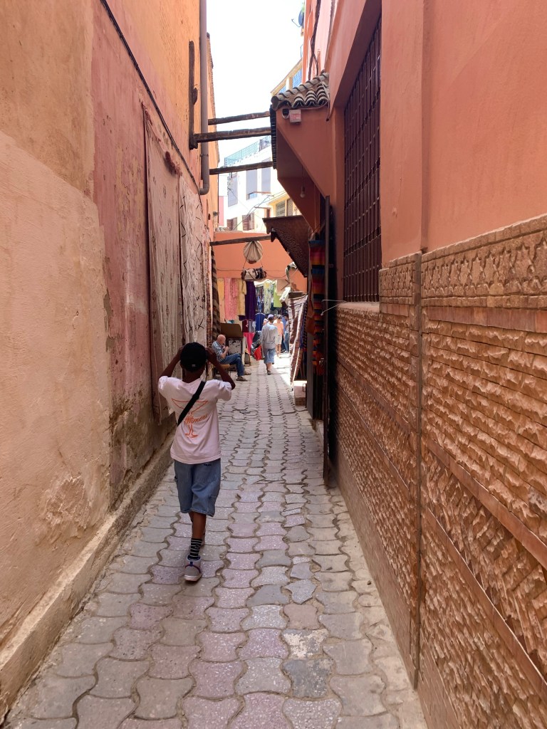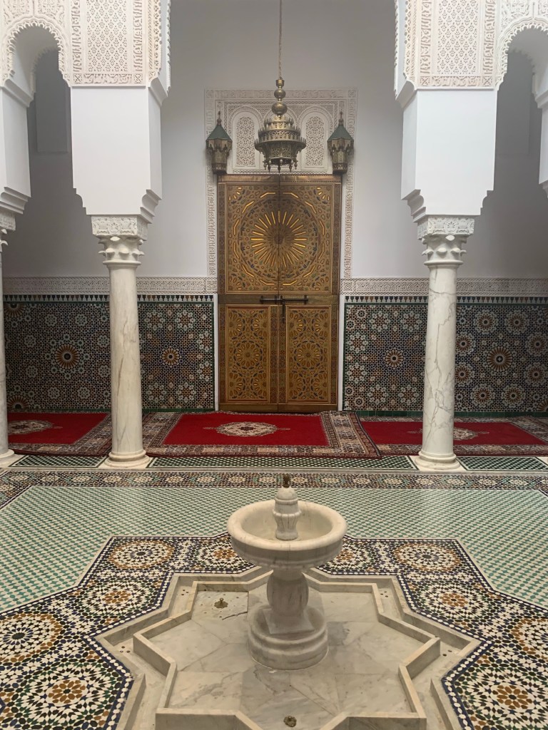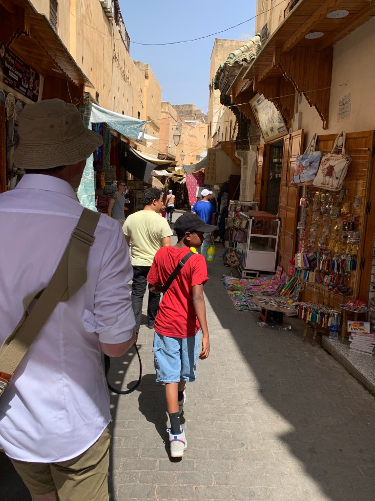 Ismael komt ons halen en we hebben al snel door dat het een bijzondere ervaring wordt. Hij is een geboren verteller, neemt ons mee in de diepste uithoeken van de medina. We filosoferen over geloof, hij vertelt over zijn cultuur, zijn ouders en grootouders, hoe anders en hechter het gemeenschapsleven was ( water halen, samen broodbakken, kleding wassen). We bezoeken de mooiste plekjes met schitterende fonteinen (die ook ik ook wel in onze tuin zou willen;-). We wandelen als “echten” door de straatje, we drinken fruitsap en milkshake in een bar die we anders nooit zouden binnengaan en het lijkt wel of hij iedereen kent.